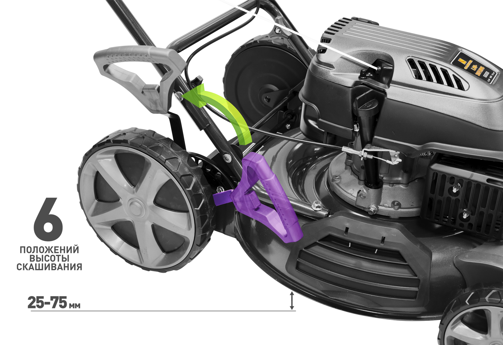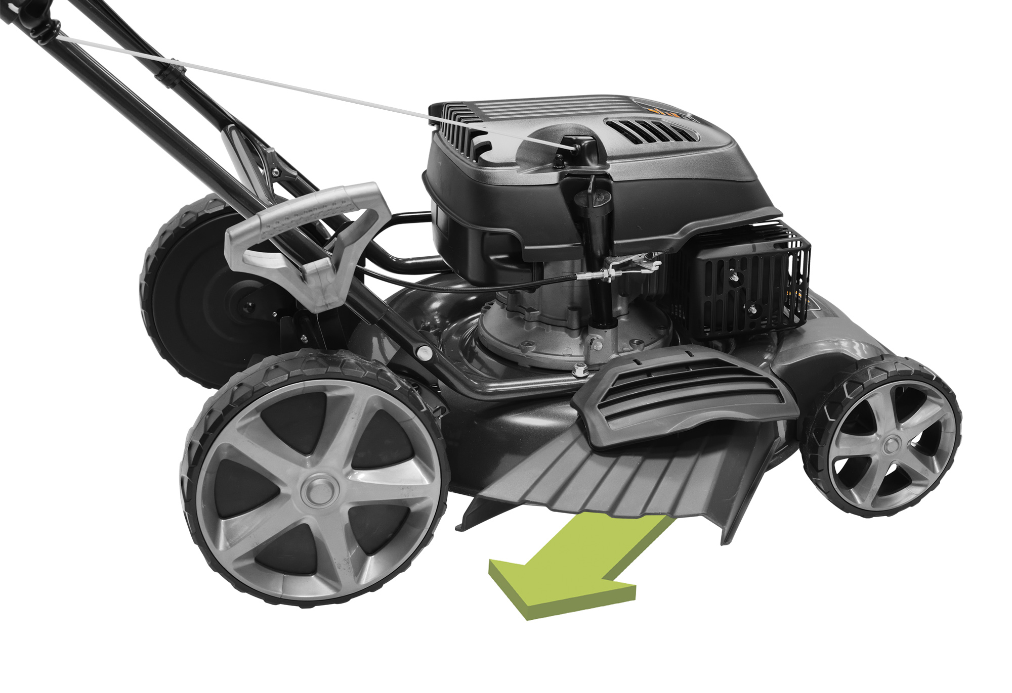 Большие колеса для лучшей проходимостиСистема измельчения травы (мульчирования) для удобрения почвы Eco Clip